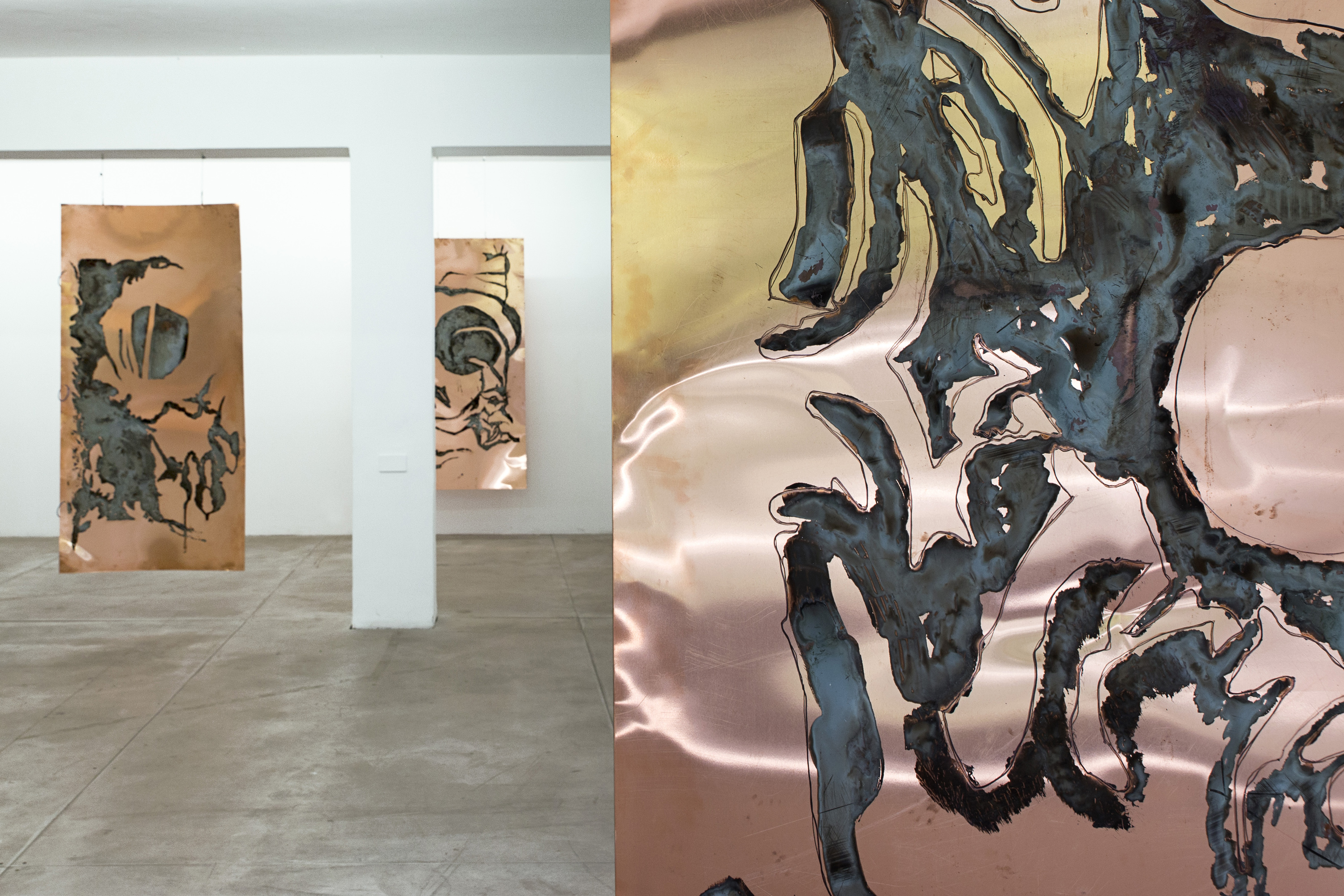 Lito Kattou, San, Point Centre for Contemporary Art 2018, Installation view. Skins & Feathers IX; I; II, 2018; Sun, 2018; Skins & Feathers III; X; VI; XI; VII; VIII, 2018. Photo: Nikos Alexopoulos