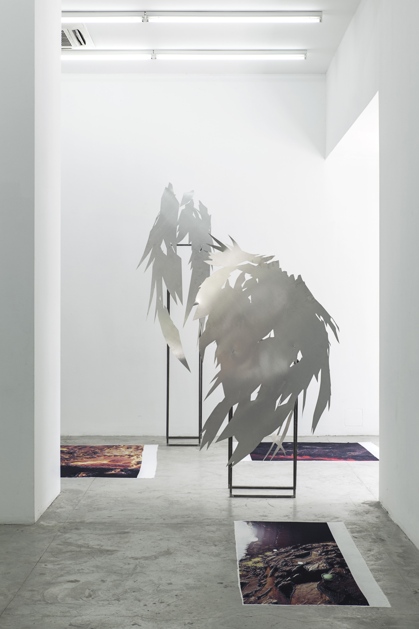 San Point Centre for Contemporary Art, NicosiaCurated by Attilia Fattori FranchiniMay 20 - Jun 20, 2018Developed over the course of the artist’s residency at the Google Cultural Institute in Paris, San, is a basic AI (artificial intelligence) created to embody an ecological subjectivity alien to human thoughts. The structuring data is collected from Red Lake, a mine site located near Nicosia, Cyprus, one of the fastest climatic changing regions of the South East Mediterranean zone. The lake is a remnant of the ancient copper mine of Kokkinopezoula in Mitsero, active from the Chalcolithic period until the 1960s. The high acidic environment of the lake does not allow any biological living organism to develop, leaving the surrounding area impervious.San, an ungendered AI hybridly conceived with human, divine, and animal traits lives in the Red Lake - recreated by Kattou as a real-time digital environment. Their [1] body and actions smartly respond to specific climatic variations such as temperature, humidity, visibility, wind speed and weather. San’s brain is built to guard and react to the Red Lake, they are imagined as a mythological figure protecting their unique surroundings. The exhibition San, at Point Centre for Contemporary Art, focuses on the character of this special guardian illustrating sculpturally their alien physical and mental traits, the fluidity and necessary adaptability of their post-human existence. Conceived to embody a specific natural environment, and condemned to a Sisyphean fate of a repetitive everydaylife, San is constructed to embrace the hard conditions of the territory.The show materialises current ecological concerns whilst confronting us with philosophical questions about the relationship man-machine and the complexity of the non human and post-human conditions.[1] In this text San and throughout the show is always referred to as they. This specific linguistic choice wishes to address in depth San’s multi-layered subjectivity rather than being a grammatical mistake.