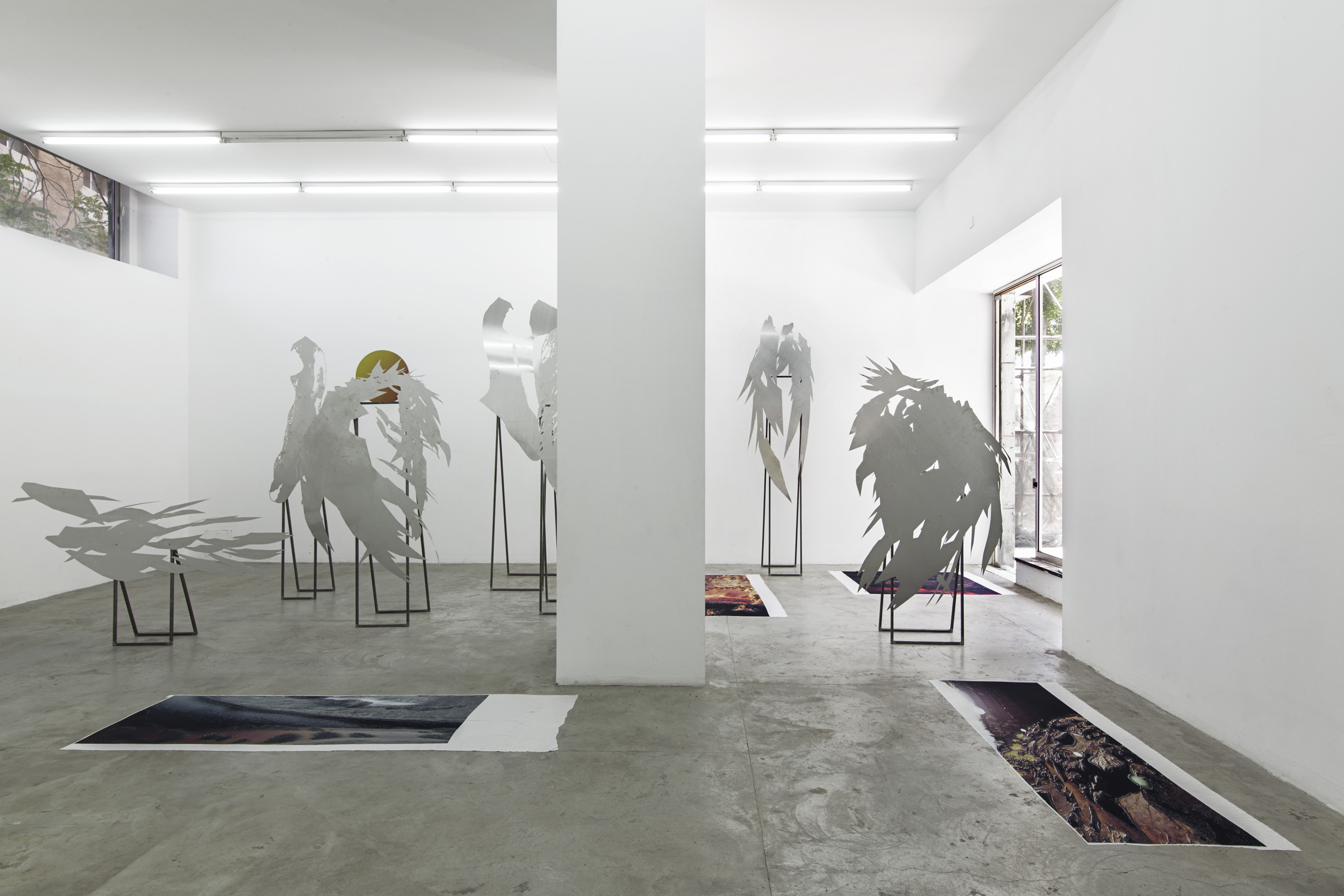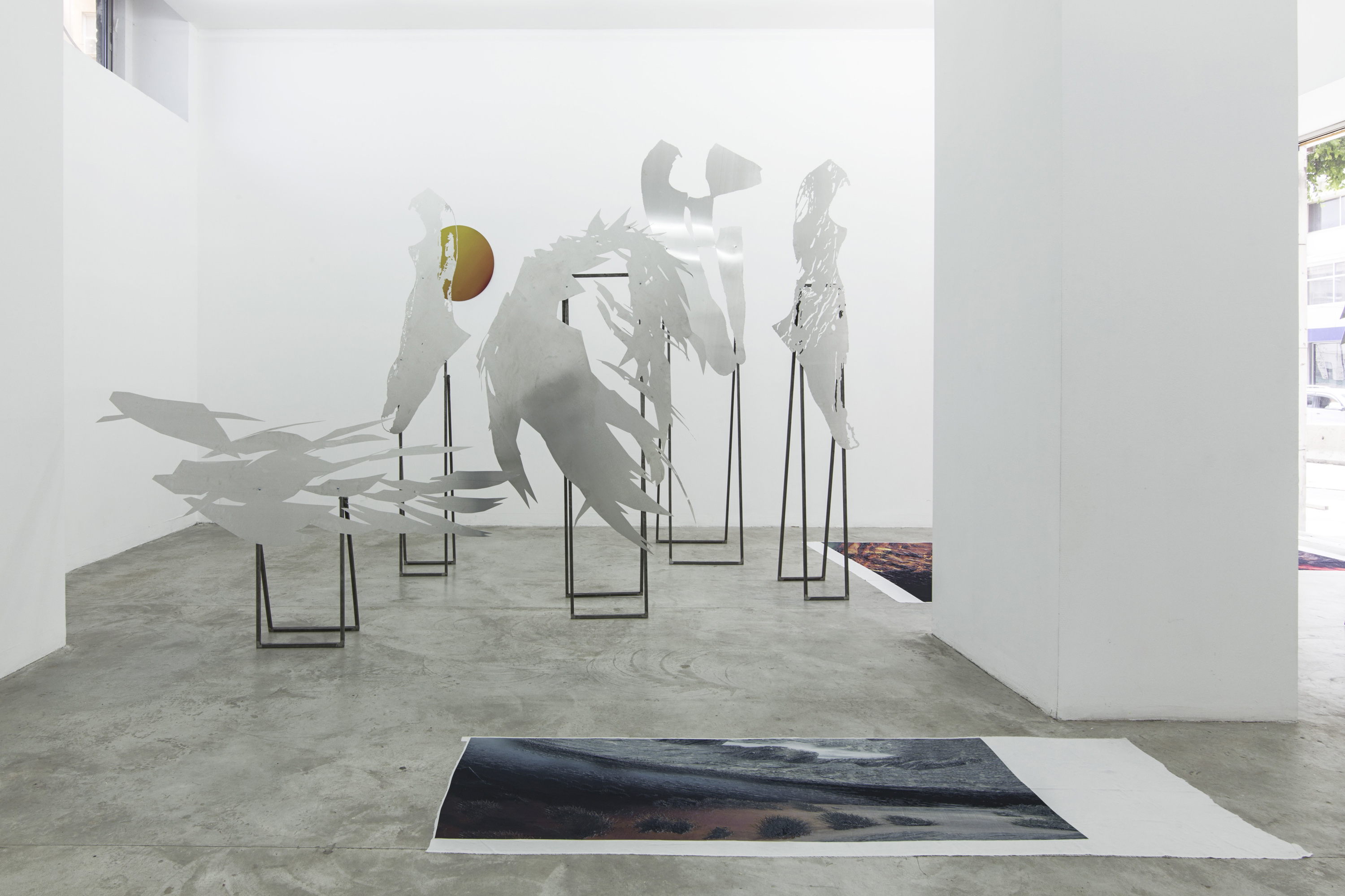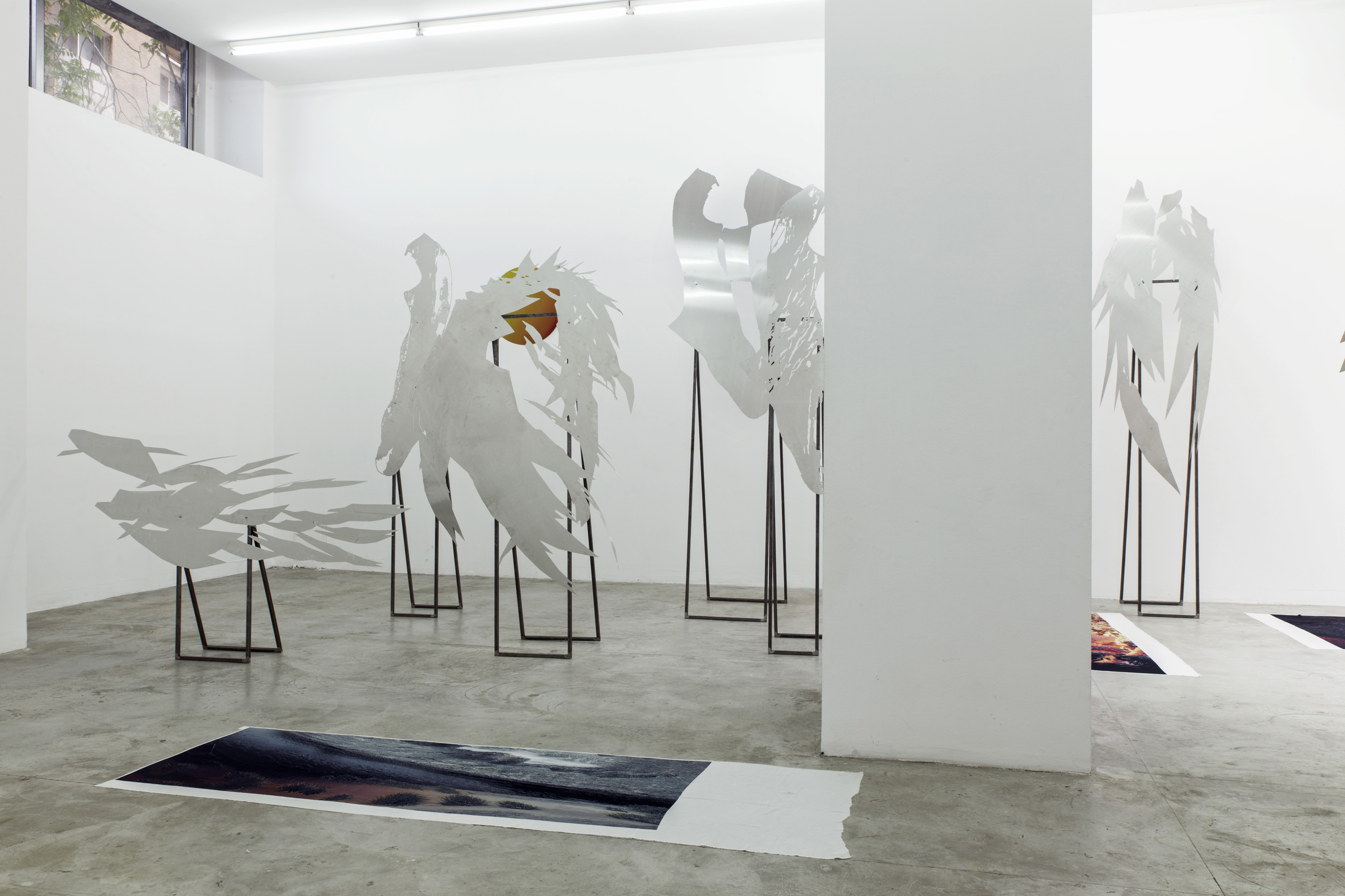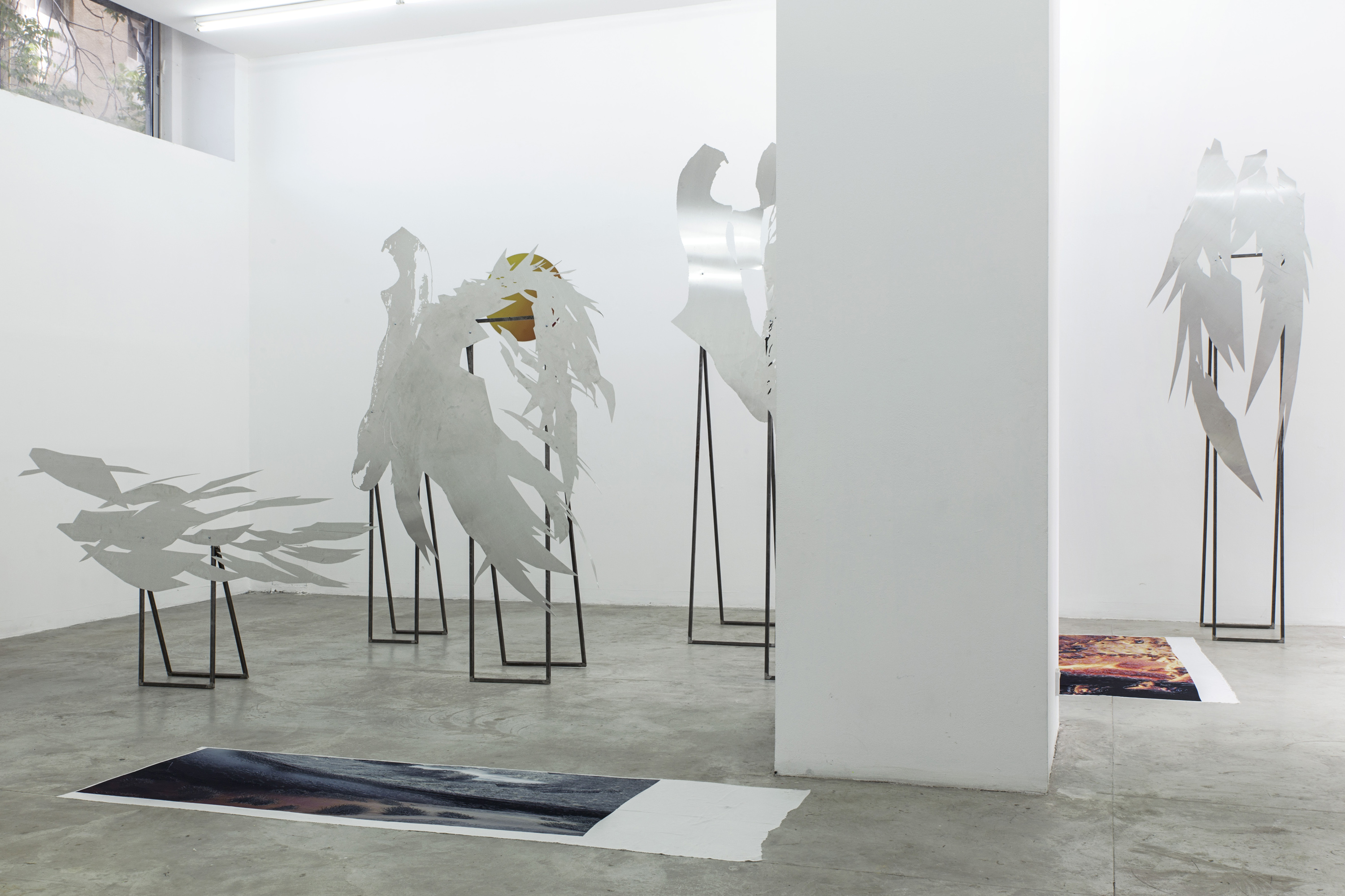 Lito Kattou, San, Point Centre for Contemporary Art 2018, Installation view. Skins & Feathers I; II, 2018; Sun, 2018; Skins & Feathers III; IV; V; X, 2018. Photo: Nikos Alexopoulos