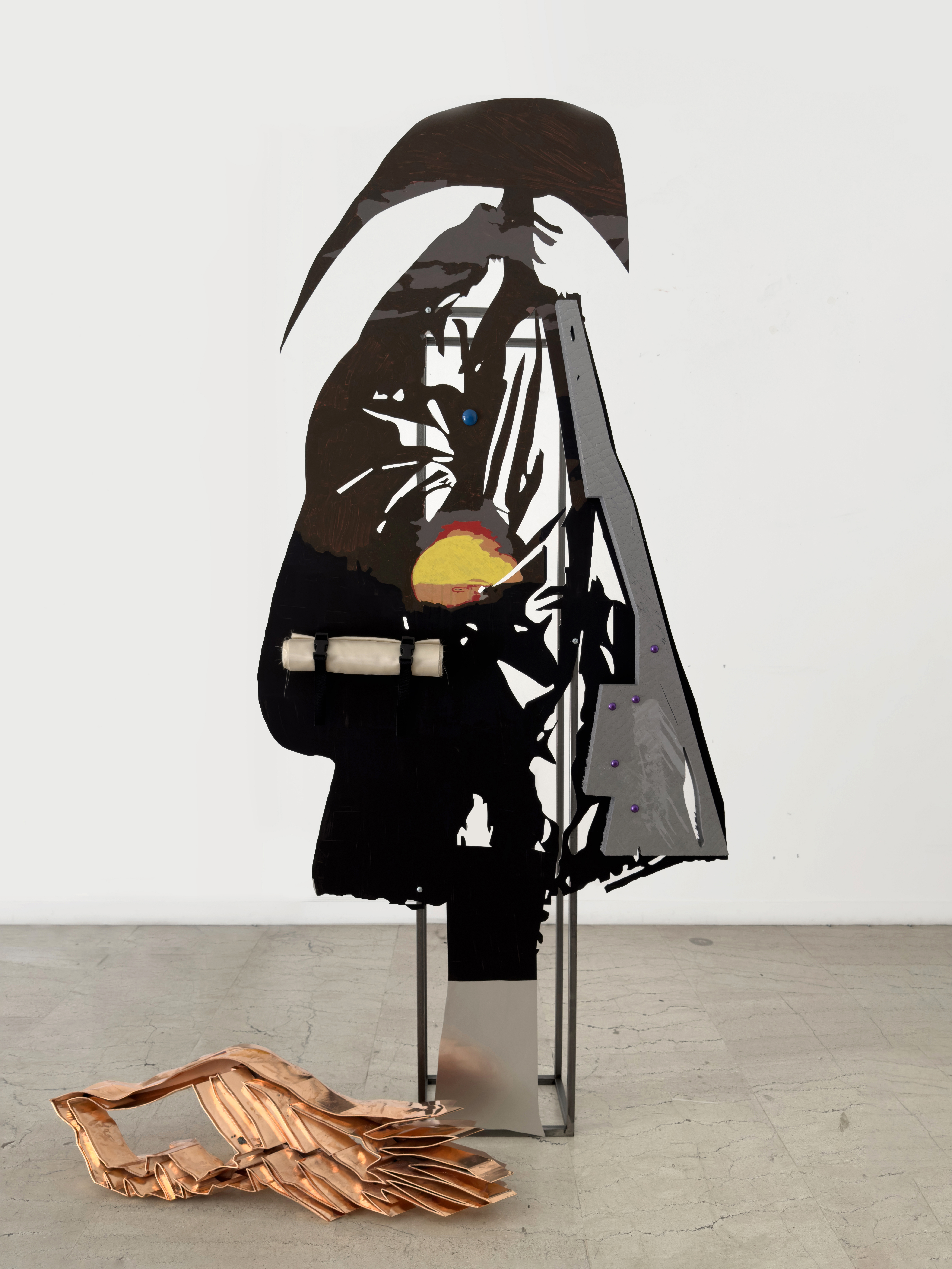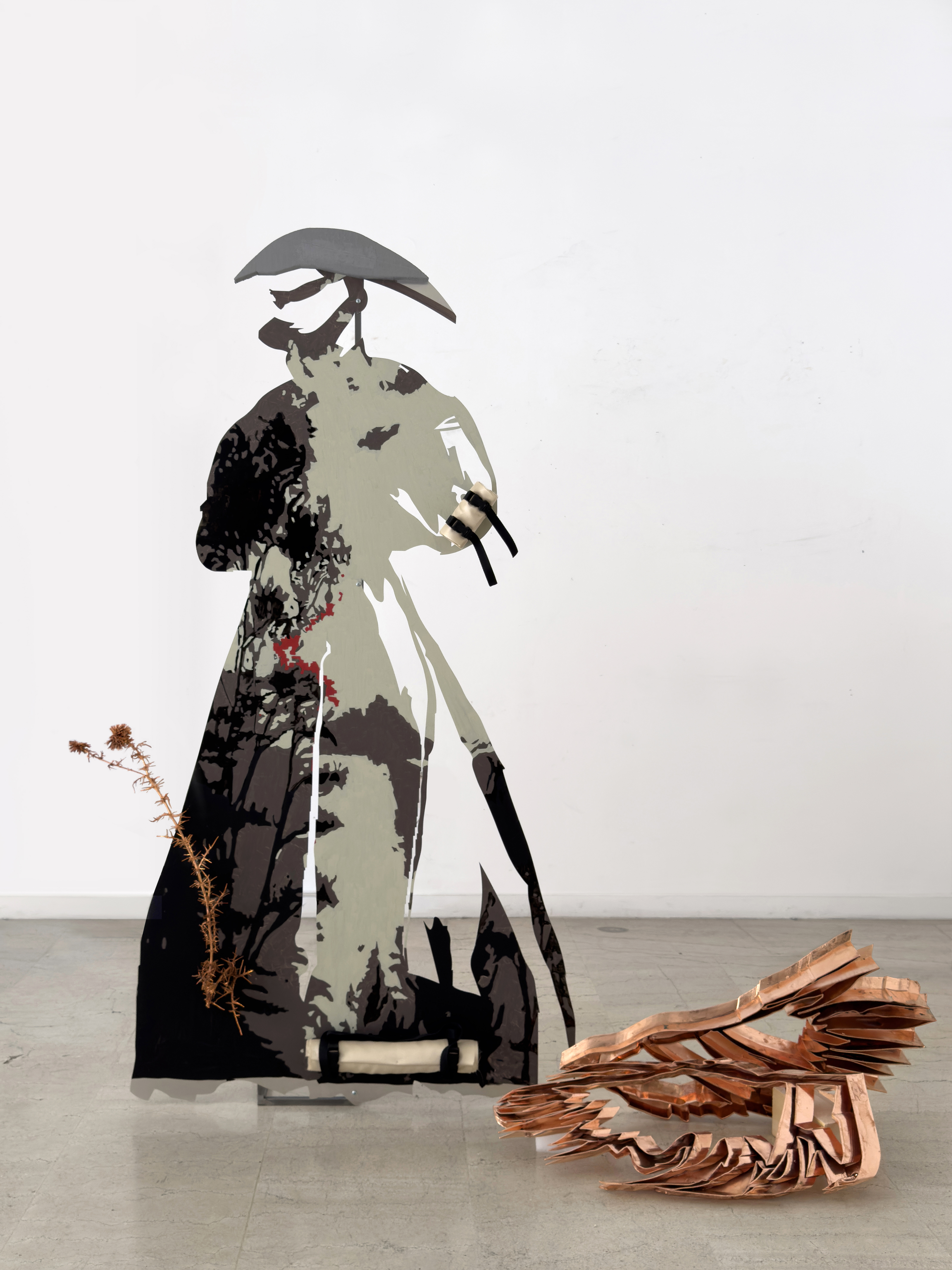 Lito Kattou, Soothsayer I, 2024, 190 x 125 x 25 cm, aluminium, steel, acrylic, styrofoam, textile, copper