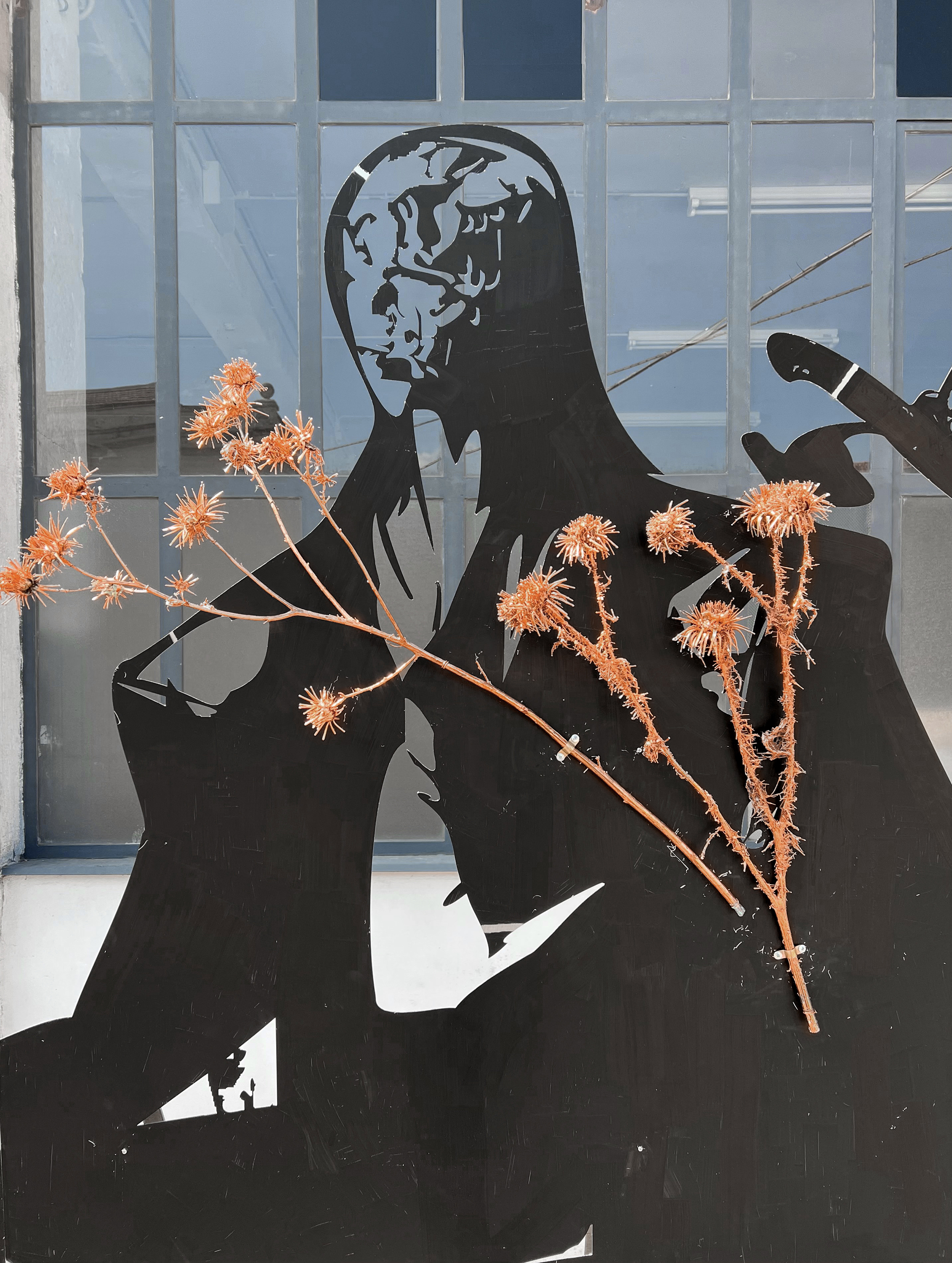 In the context of the exhibition Lito Kattou. Whisperers curated by Chiara Nuzzi, on view from April 5 to June 9, 2023 at Fondazione Arnaldo Pomodoro, Fondazione ICA Milano is pleased to welcome from April 6 the work Whisperer V, an element of connection and synergy between the two foundations in Milan. Aimed at delving into the work of Cypriot artist Lito Kattou (1990), the exhibition presents the sculptures series Whisperers (2022), specially conceived for the occasion, and focuses on the idea of community in a timeless setting capable of implementing new strategies of coexistence. Her works - hybrid and abstract bodies, anthropomorphic or animal creatures within which the artist integrates natural and cosmic elements - analyse the process of changing matter over time, the theme of otherness and unknown space-time scenarios. Installed on the facade of Fondazione ICA Milano, Whisperer V is part of the group of sculptures exhibited in the spaces of Fondazione Pomodoro. The imposing silhouette encompasses some thistle flowers and encapsulates the ideas and research at the core of the artist's production, coherently connecting to the works in the spaces of Fondazione Pomodoro. In this work, Kattou synthesises the idea of coexisting with the surrounding environment also thanks to the location dedicated to the work itself; in fact, the sculpture is located outside and dialogues, inevitably, with its context and the natural phenomena connected to it. The dimension disclosed by Kattou, of which the Whisperers community is a spokesperson, departs entirely from an anthropocentric vision in favour of a dimension that foregrounds collectivity, collaboration and sustainability. Kattou invites us into a world with no defined space-time coordinates, whose inhabitants live in a condition of democratic coexistence with the surrounding environment and nature.