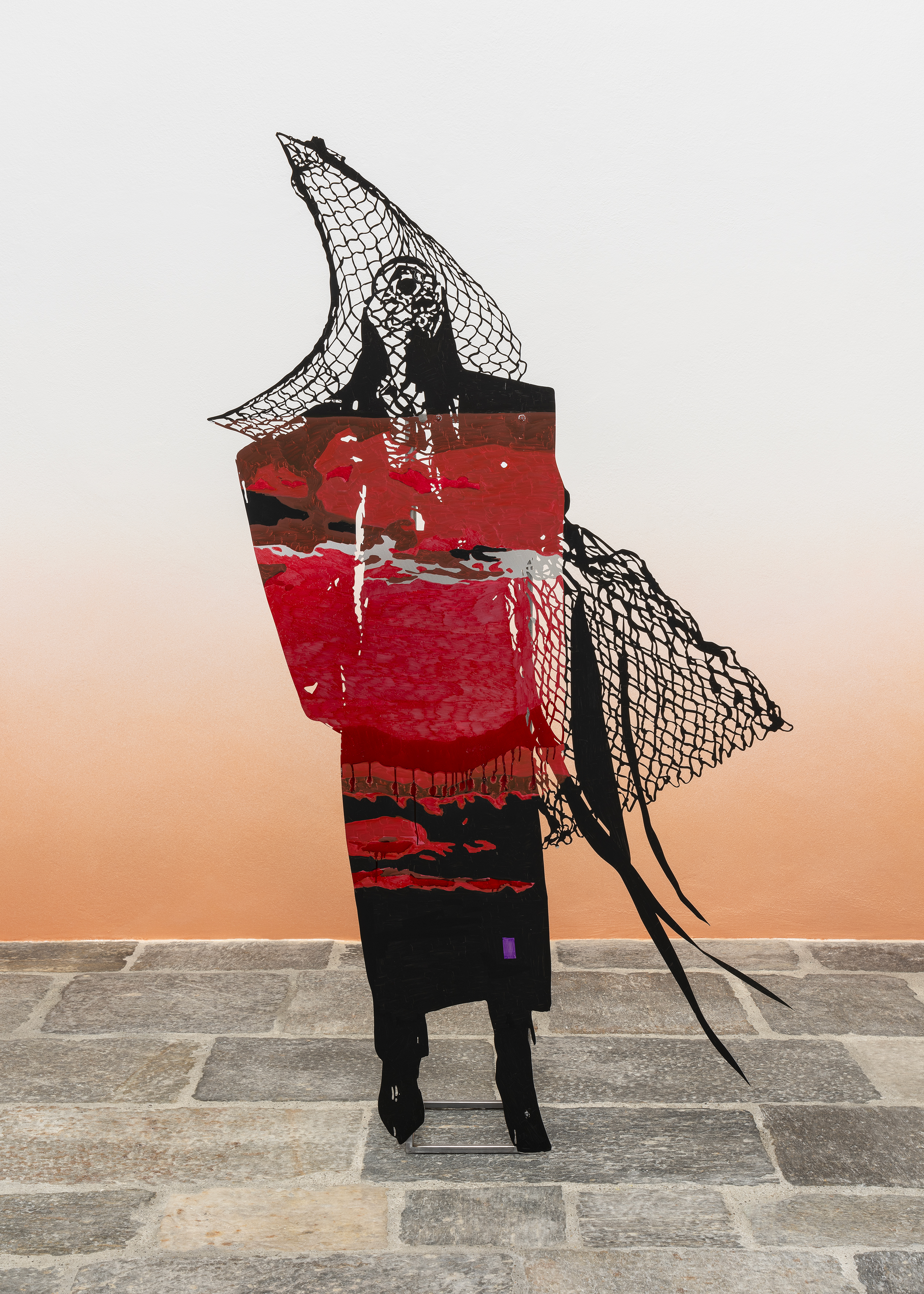 Lito Kattou, Whisperer II, 2023, aluminum, steel, acrylic, nickel plated copper, rope, 190 x 145 x 33 cm