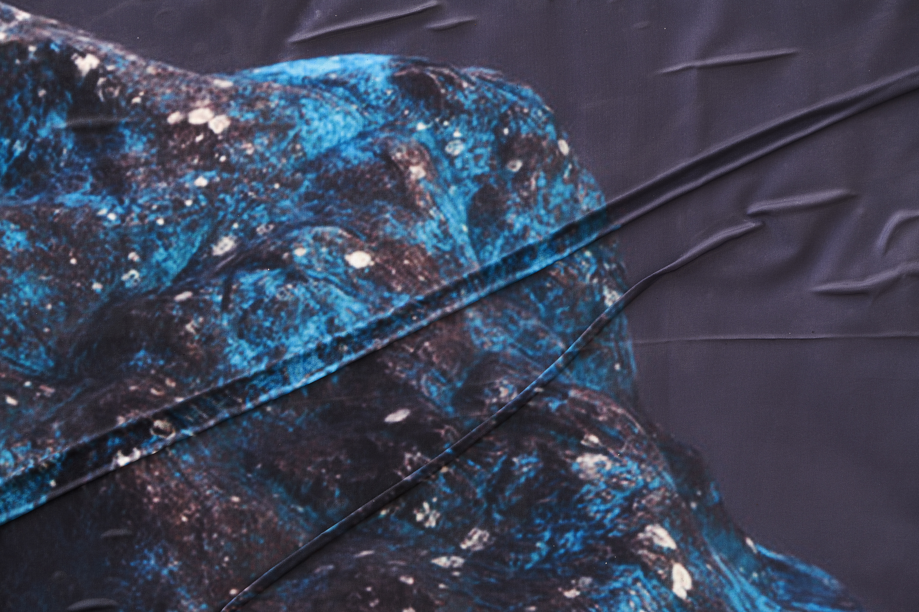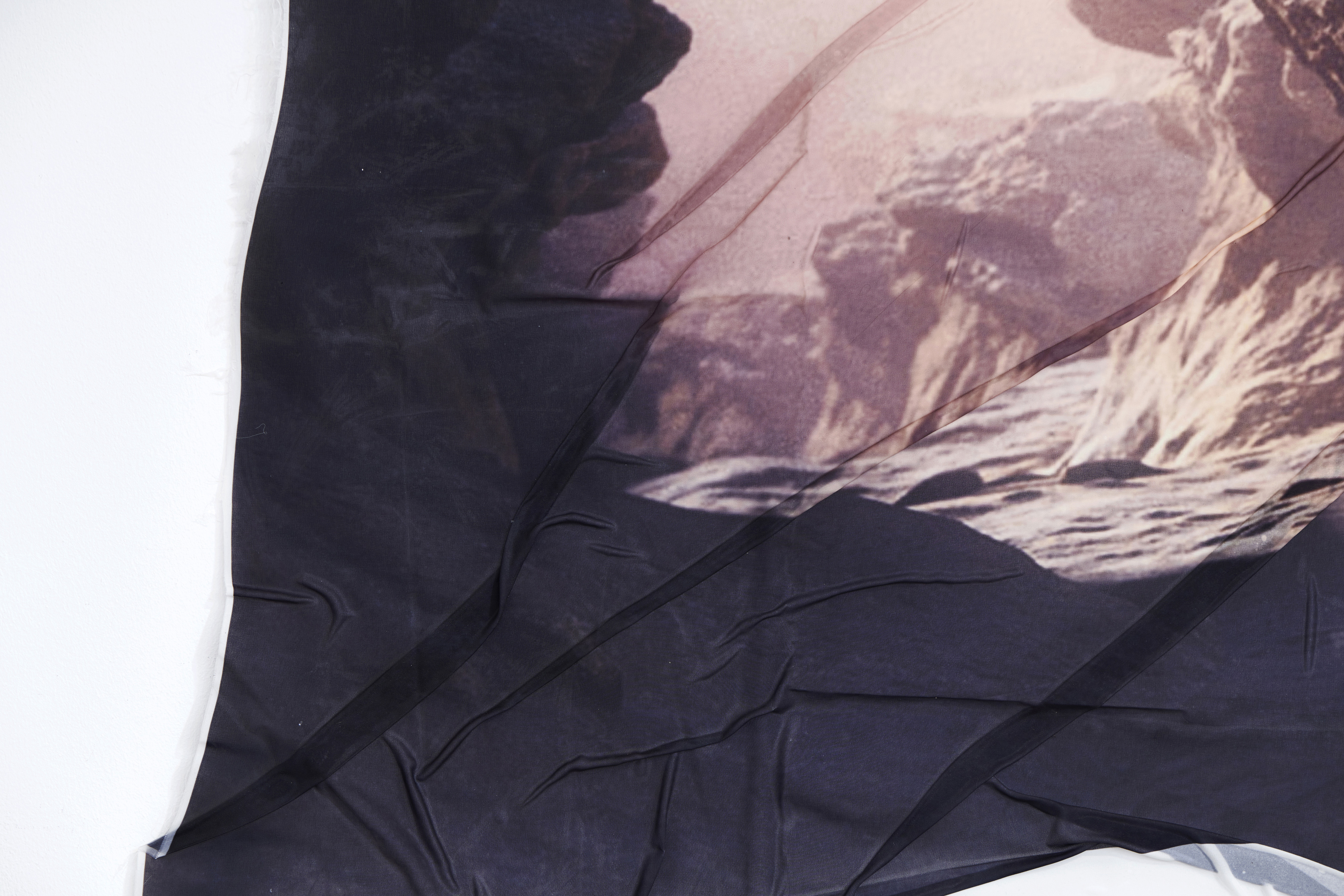 Mount M, R and J, 2019, Digital print on textile, textile hardener, custom made mounting tape, 180 x 140 cm