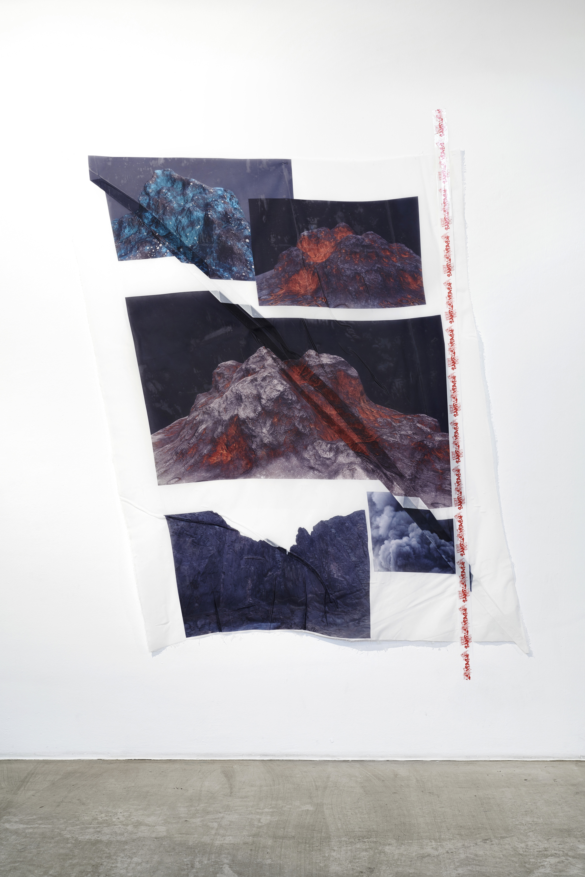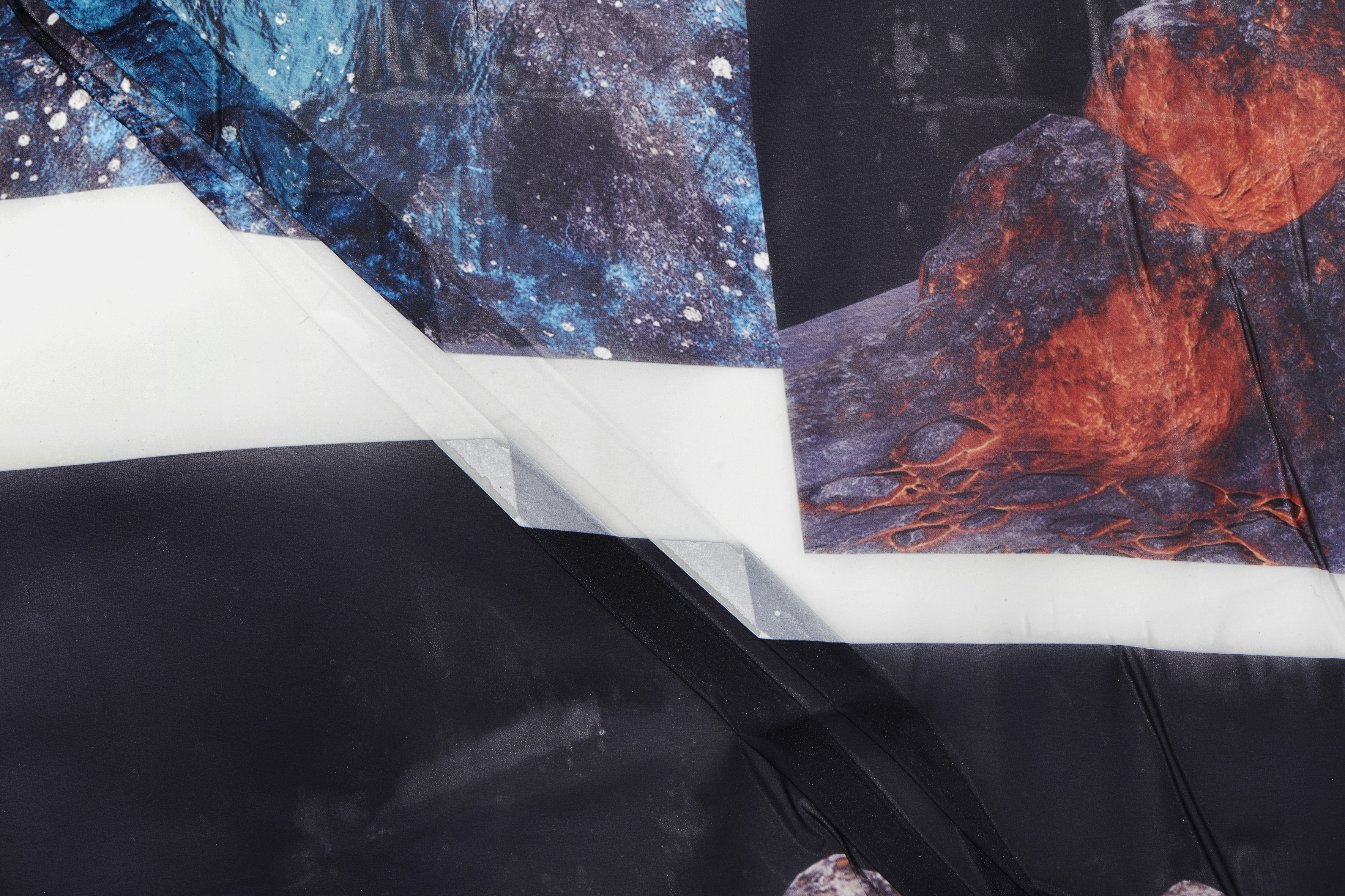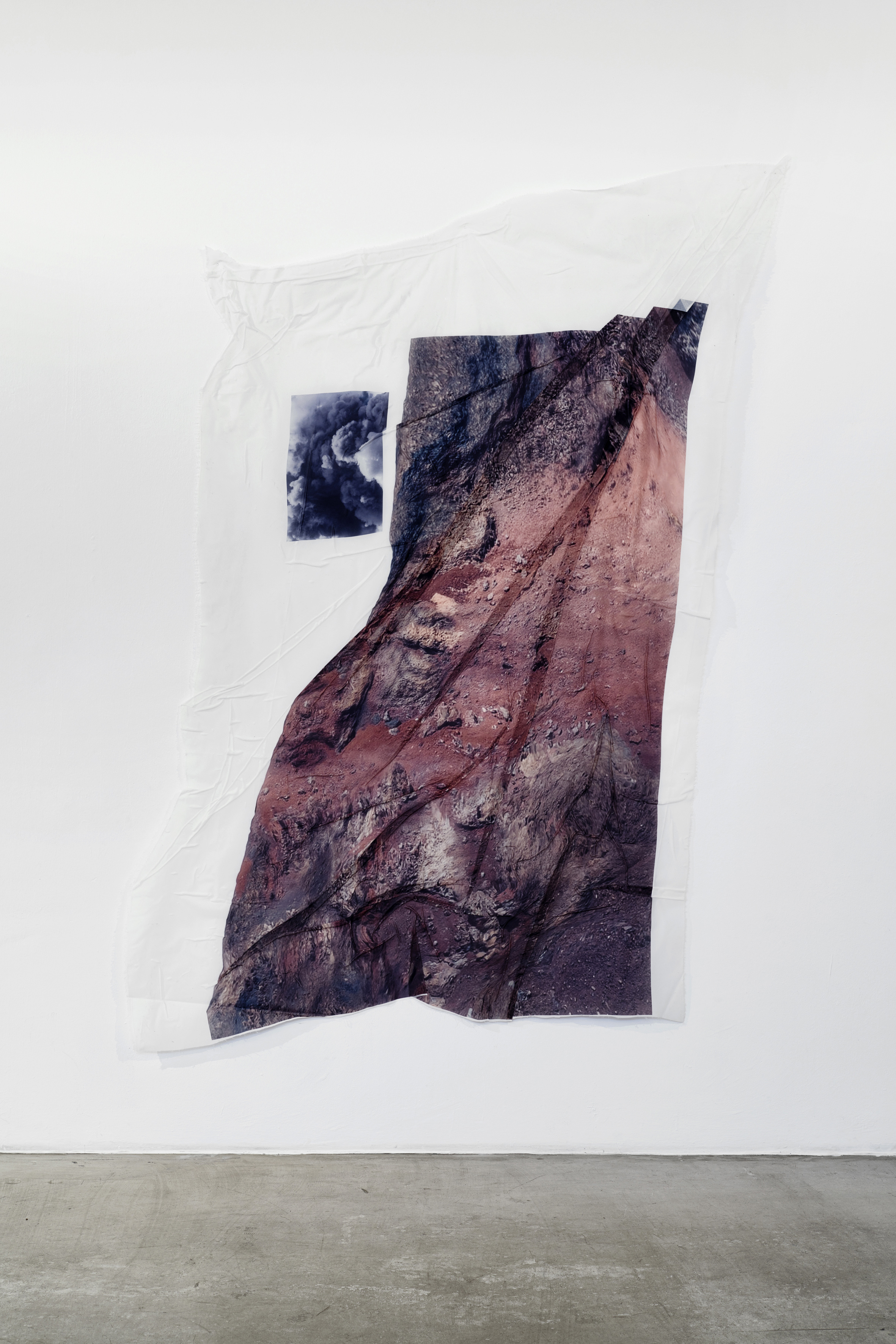 Mount K, T and J, 2019, Digital print on textile, textile hardener, custom made mounting tape, 180 x 140 cm