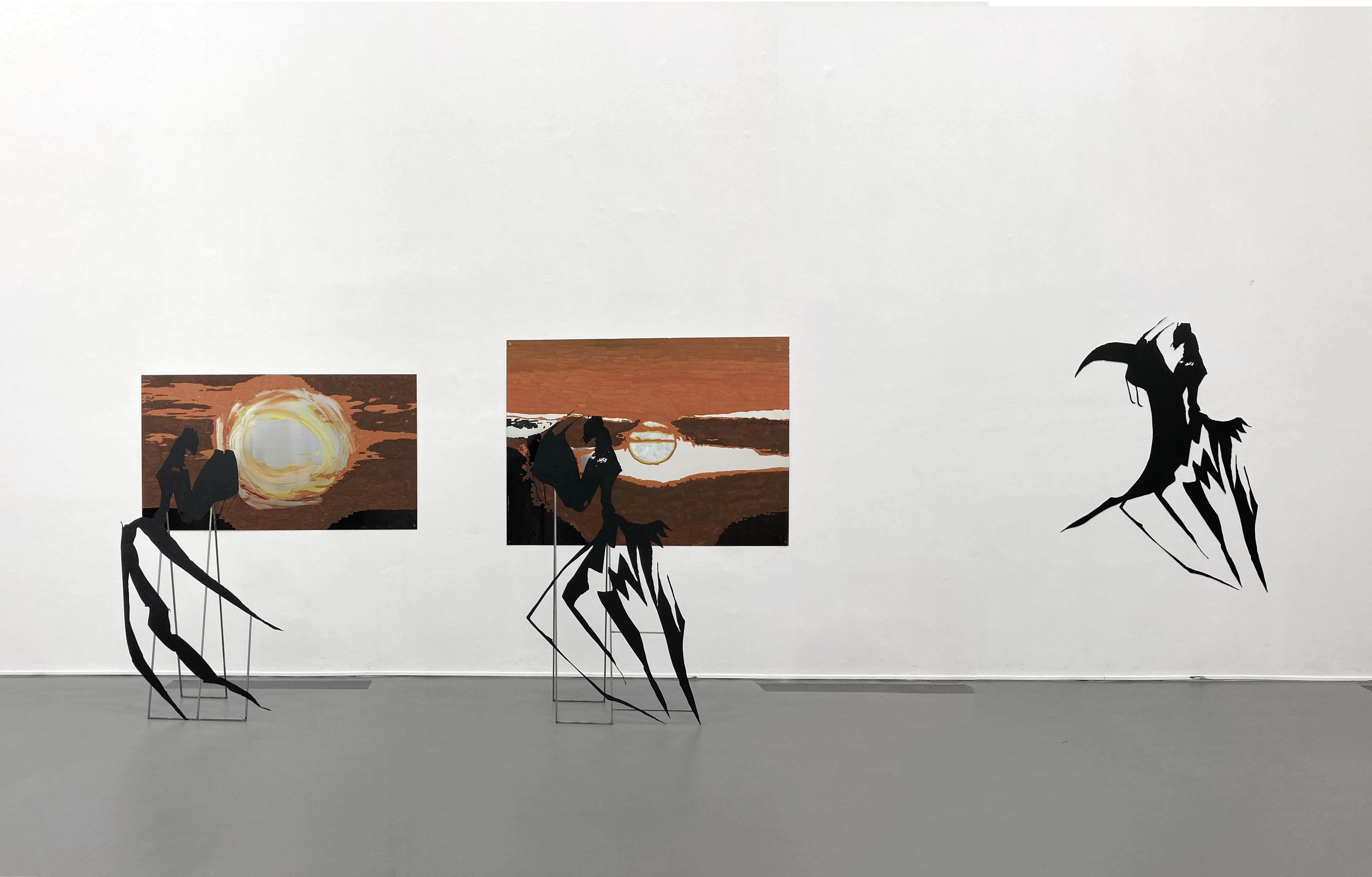 Dance Beyond IndividuationA plague passes through the skin, undoes the normal function of our organs. The body is in disarray. Perhaps we will recover and it seems things will go back to normal. Without worry over whether our organs are functioning, the boundaries of the body become re-secured. Or do they?We are taught from a young age to be intimately aware of the boundaries where our bodies end and other bodies begin. Encased in skin, we experience our bodies as a bundle of sensations that our mind and social common sense help us organize into body image and spatial awareness. But there are also those moments where the sense of the body and the sense of the self expand. Perhaps it’s a moment of intense empathy; we feel as if we can experience the sensations of another. Other times it could be the feeling that there is a nervous system or deeper sense of belonging that eludes our immediate comprehension. Despite how much we find ourselves staring at our own body and the bodies of others, so much of embodied experience exceeds the images we can make.Philosophers Giles Deleuze and Felix Guattari offer the existence of a “Body without Organs” to begin undoing the sense that bodies can be contained by the image forms we associate them with. For Deleuze and Guattari “A Body without Organs is made in such a way that it can be occupied, populated only by intensities. Only intensities pass and circulate.” Following Deleuze and Guattari, we wonder, what if a body need not be understood only as a scientific organism? What if the individuated human body is just one of the many guises that sentience appears through?I gaze at myself in the mirror and in my sway I see the shift of a mantis. I lie down and feel my body float–my bed is not my bed. The contact my skin makes with the sheets creates small intensities of sensation and enfold me into the materiality of cotton. Research into mycellium and posthuman animacies point us to more-than-human configurations where the horizon of a body’s unknown composition in culture, science, and cosmology unfold into new manifestations of awareness. The world transfers its impressions onto us constantly. We can only feel so much by ourselves.Julia Kristeva argues that “at the crossroads of body and meaning, of biology and sublimation it is perhaps dance more than other trans-linguistic experiences that informs and accompanies the process of transhumanization as it counters the crisis and exceeds the impending threat of apocalypse”. Dance is a way to move with others, to find more ways to create meaning and methods of relating signs with new constellations of significance.The fold of “others” need not remain with the terrain of human persons however. Our bodies coexist in complex ecosystems. We are affected by and affected by the environment. Our bodily materiality includes “nonhuman bodies, organic or inorganic.” For those marked within biopolitics’ animacy hierarchies that distribute chances towards life and death along lines of ability, race, class, and gender, some persons and entities are considered objects first, sentience second.Sculptures are choreographed, rhythm motivates animal-human-machinic imaginaries . Mantises molt their exoskeletons and we are dancing with words and matter trying to molt well-formed ideas. A dance between sentience, subjectivity and objectivity; AI dreams, body fluids, oil paint and transcorporeality. Lito’s Mantises reclaim multiple time zones and redress multiple (gendered) history injustices. A sun setting and a sun rising, hot plasma on an aluminium plate. Dancing Plague reclaims the museum as a dancing space–a club where animacy hierarchies loosen their hold. Kinesis runs through our normal distinctions allowing identities to become fluid and things to be symbiotic. In such space, the body becomes more than one, boundaries soften. In this porous and diffuse state what sorts of social bodies emerge that might exceed the scale of impending threats towards life?For the installation Myriad Worlds as Ours, three bodies of Mantises are situated in dialogue with a sunrise and a sunset, part of a series of paintings where the artist examines the circularity of time and its flow through the relationship of human and other-than-human agents with the environment and the astral phenomena of the Sun. The bodies of Mantises have been considered to have supernatural powers in many early civilisations not only for their praying posture but for being perceived as well as a trickster deity, a companion showing travellers the way home, an escort of the soul of the dead to the underworld, a necromancer, a soothsayer. The female mantis has been imagined as a femme fatale, a powerful predator and a symbol of female authority signified through sexual cannibalism applied in about a quarter of male-female sexual encounters of the species. Their body moves in repetitive swaying side-to-side movements as if resembling the vegetation in the wind, a mechanism also allowing them depth of field.Panos Giannikopoulos and Dahlia Li*Excerpt from the catalogue of the exhibition
