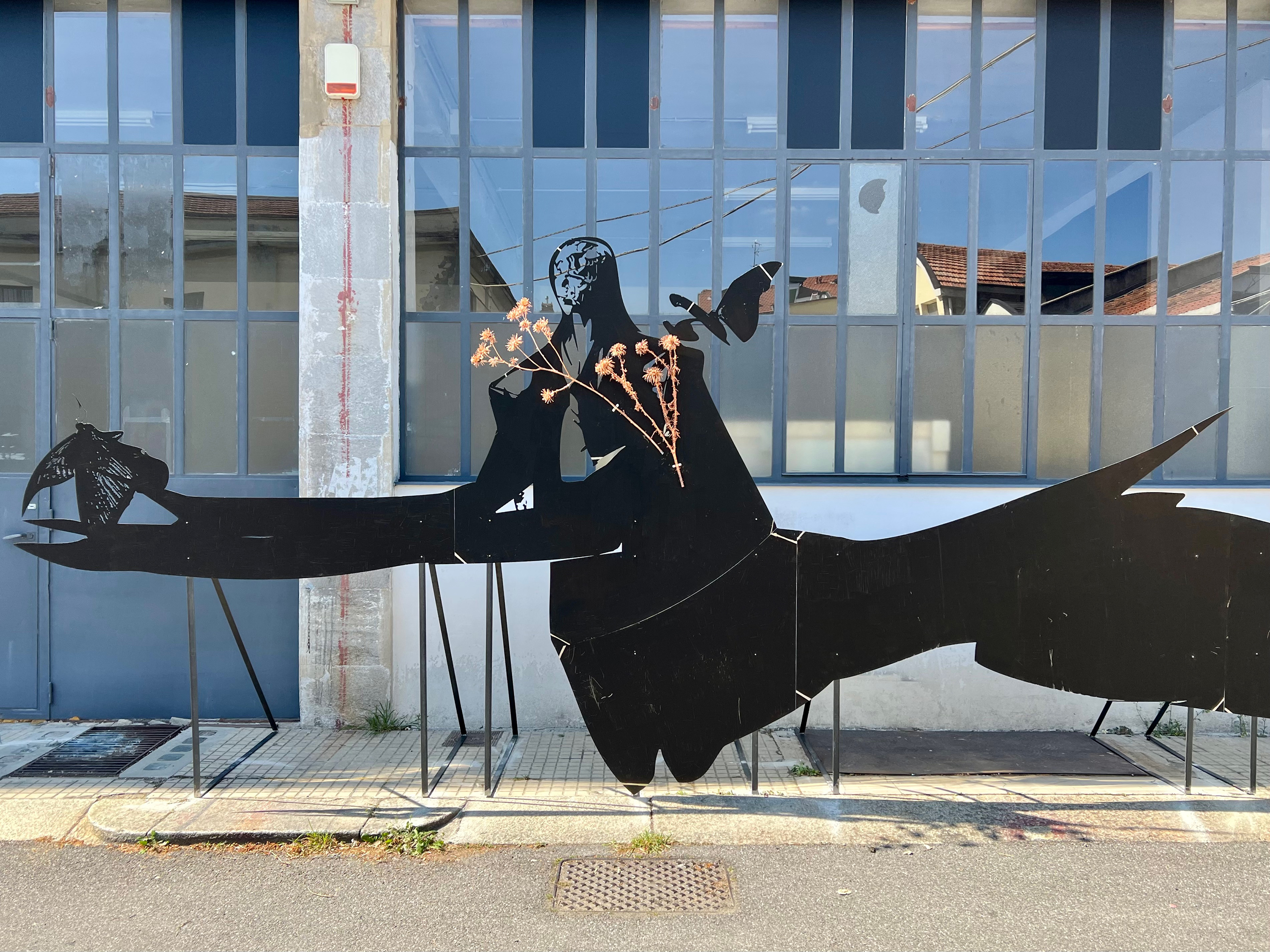 In the context of the exhibition Lito Kattou. Whisperers curated by Chiara Nuzzi, on view from April 5 to June 9, 2023 at Fondazione Arnaldo Pomodoro, Fondazione ICA Milano is pleased to welcome from April 6 the work Whisperer V, an element of connection and synergy between the two foundations in Milan. Aimed at delving into the work of Cypriot artist Lito Kattou (1990), the exhibition presents the sculptures series Whisperers (2022), specially conceived for the occasion, and focuses on the idea of community in a timeless setting capable of implementing new strategies of coexistence. Her works - hybrid and abstract bodies, anthropomorphic or animal creatures within which the artist integrates natural and cosmic elements - analyse the process of changing matter over time, the theme of otherness and unknown space-time scenarios. Installed on the facade of Fondazione ICA Milano, Whisperer V is part of the group of sculptures exhibited in the spaces of Fondazione Pomodoro. The imposing silhouette encompasses some thistle flowers and encapsulates the ideas and research at the core of the artist's production, coherently connecting to the works in the spaces of Fondazione Pomodoro. In this work, Kattou synthesises the idea of coexisting with the surrounding environment also thanks to the location dedicated to the work itself; in fact, the sculpture is located outside and dialogues, inevitably, with its context and the natural phenomena connected to it. The dimension disclosed by Kattou, of which the Whisperers community is a spokesperson, departs entirely from an anthropocentric vision in favour of a dimension that foregrounds collectivity, collaboration and sustainability. Kattou invites us into a world with no defined space-time coordinates, whose inhabitants live in a condition of democratic coexistence with the surrounding environment and nature.