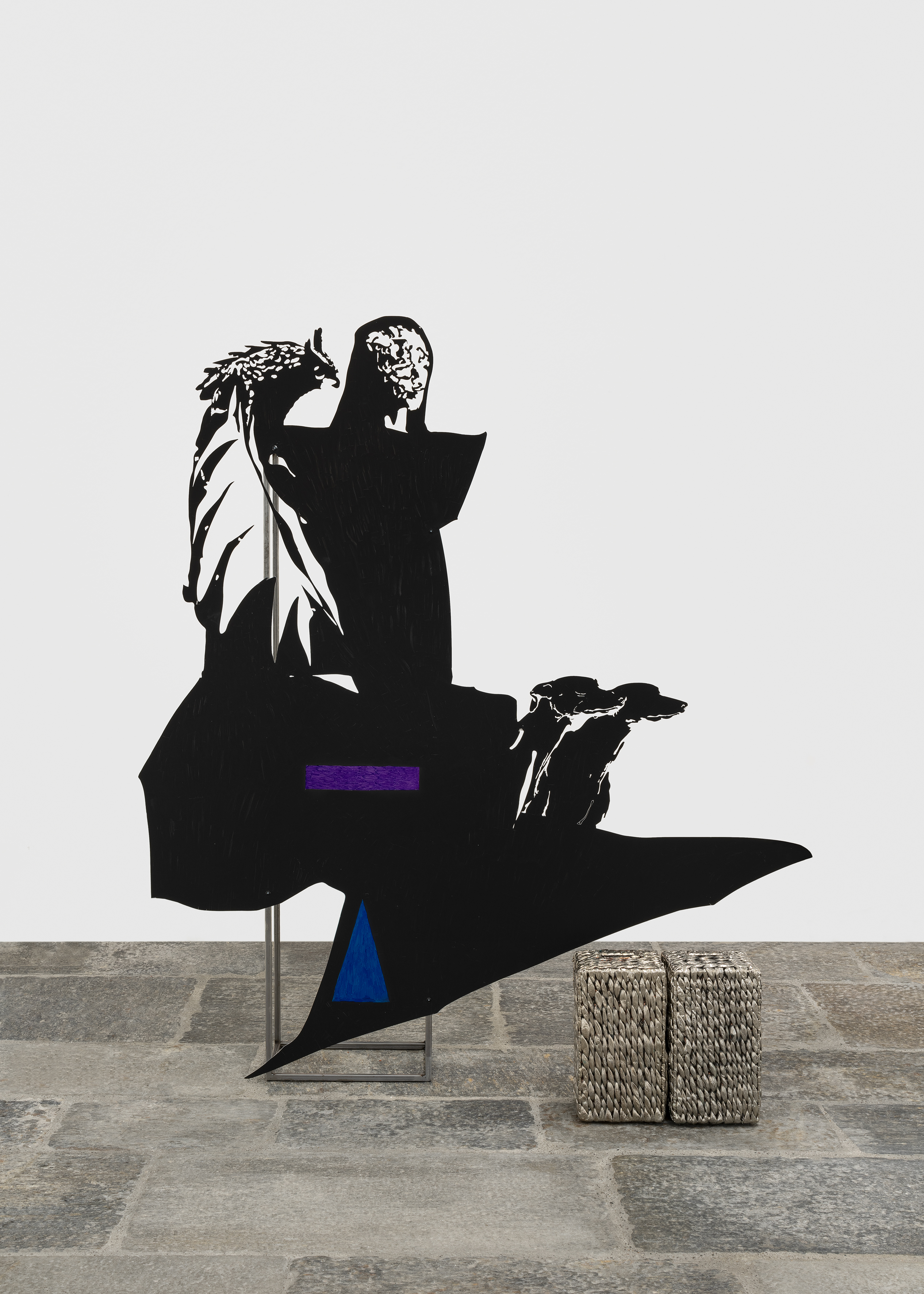 Lito Kattou, Whisperer II, 2023, aluminum, steel, acrylic, nickel plated copper, rope, 190 x 145 x 33 cm