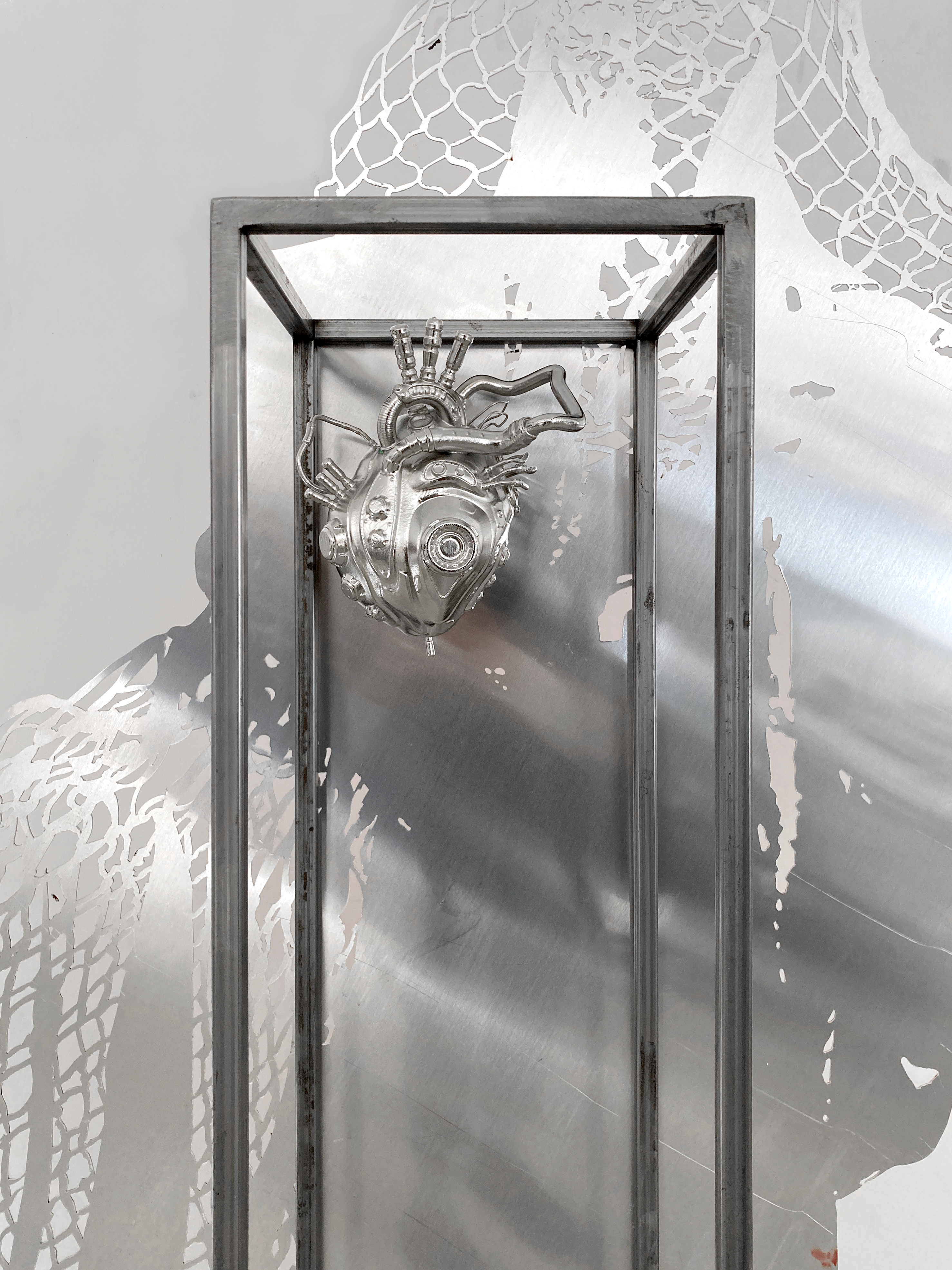 Lito Kattou, Whisperer IV, 2023, aluminum, steel, acrylic, nickel plated copper, 190 x 107,7 x 25 cm, detail