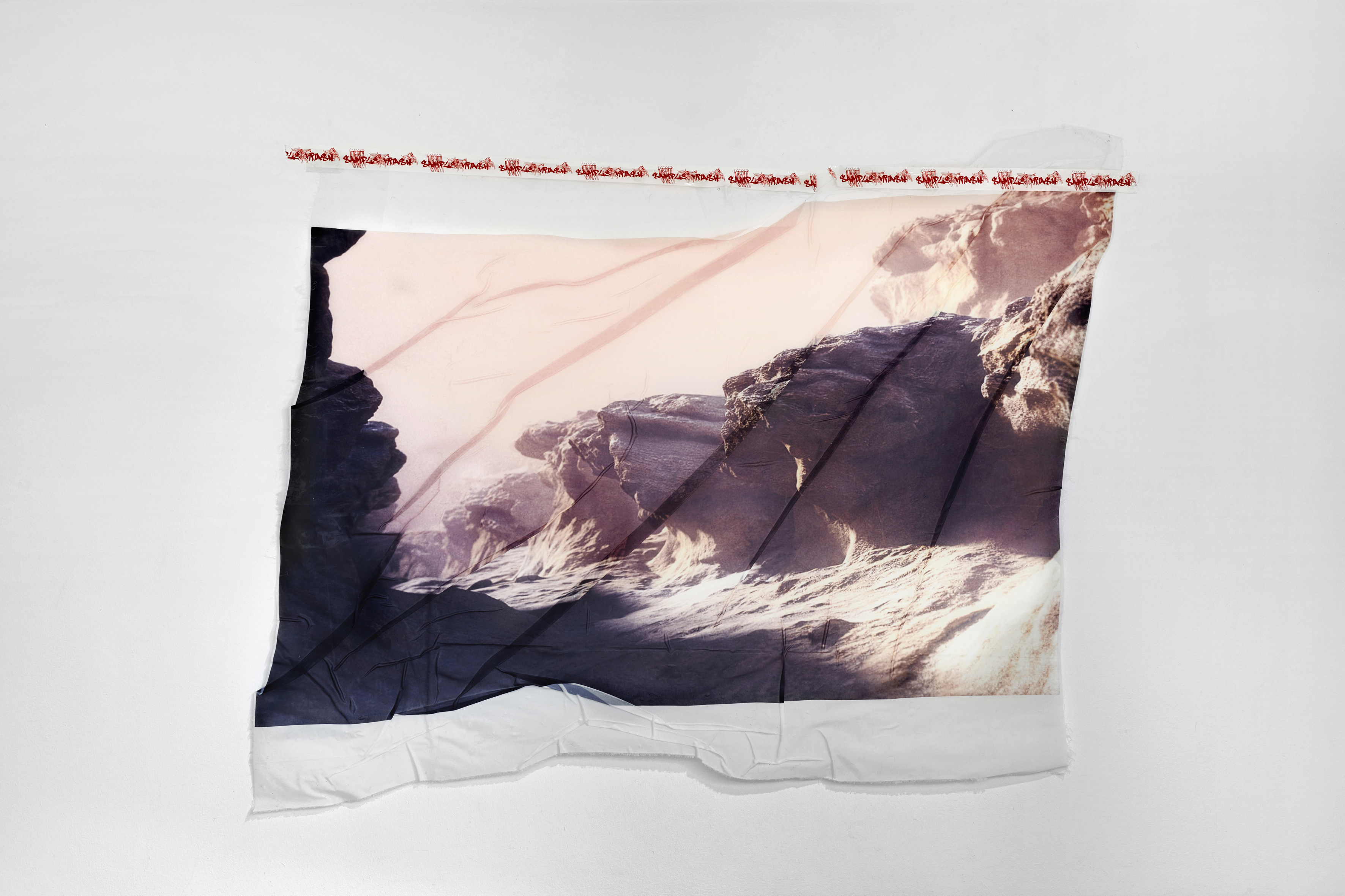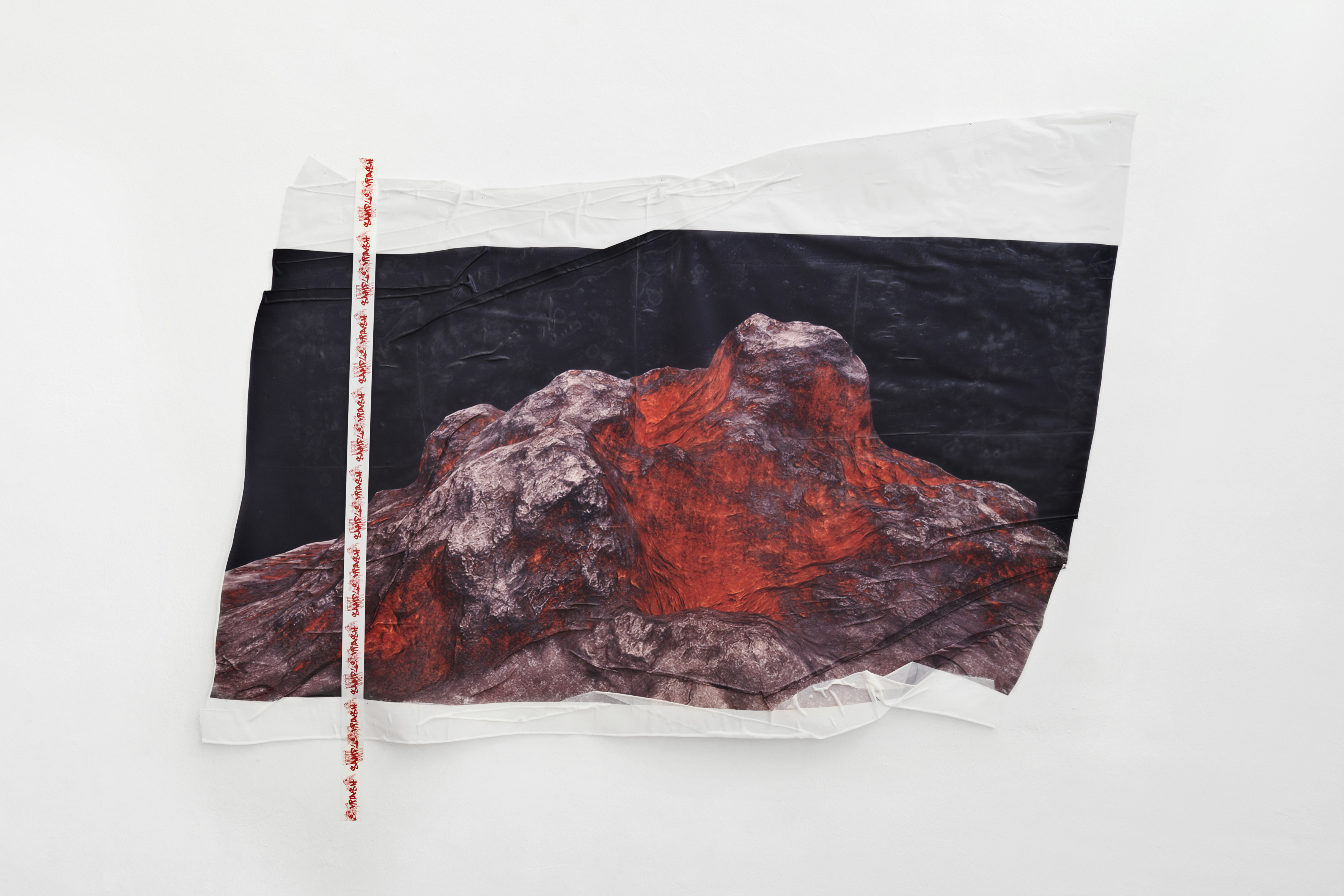 Mount M, R and J, 2019, Digital print on textile, textile hardener, custom made mounting tape, 180 x 140 cm