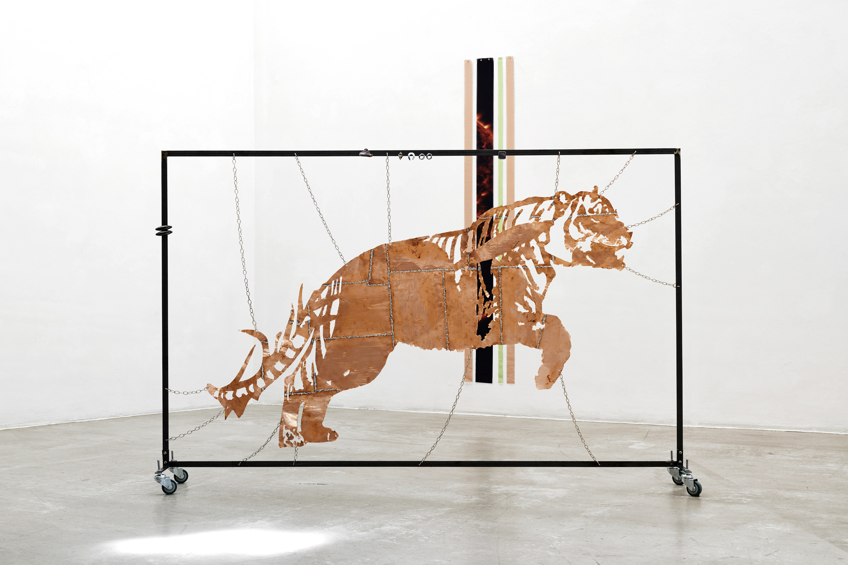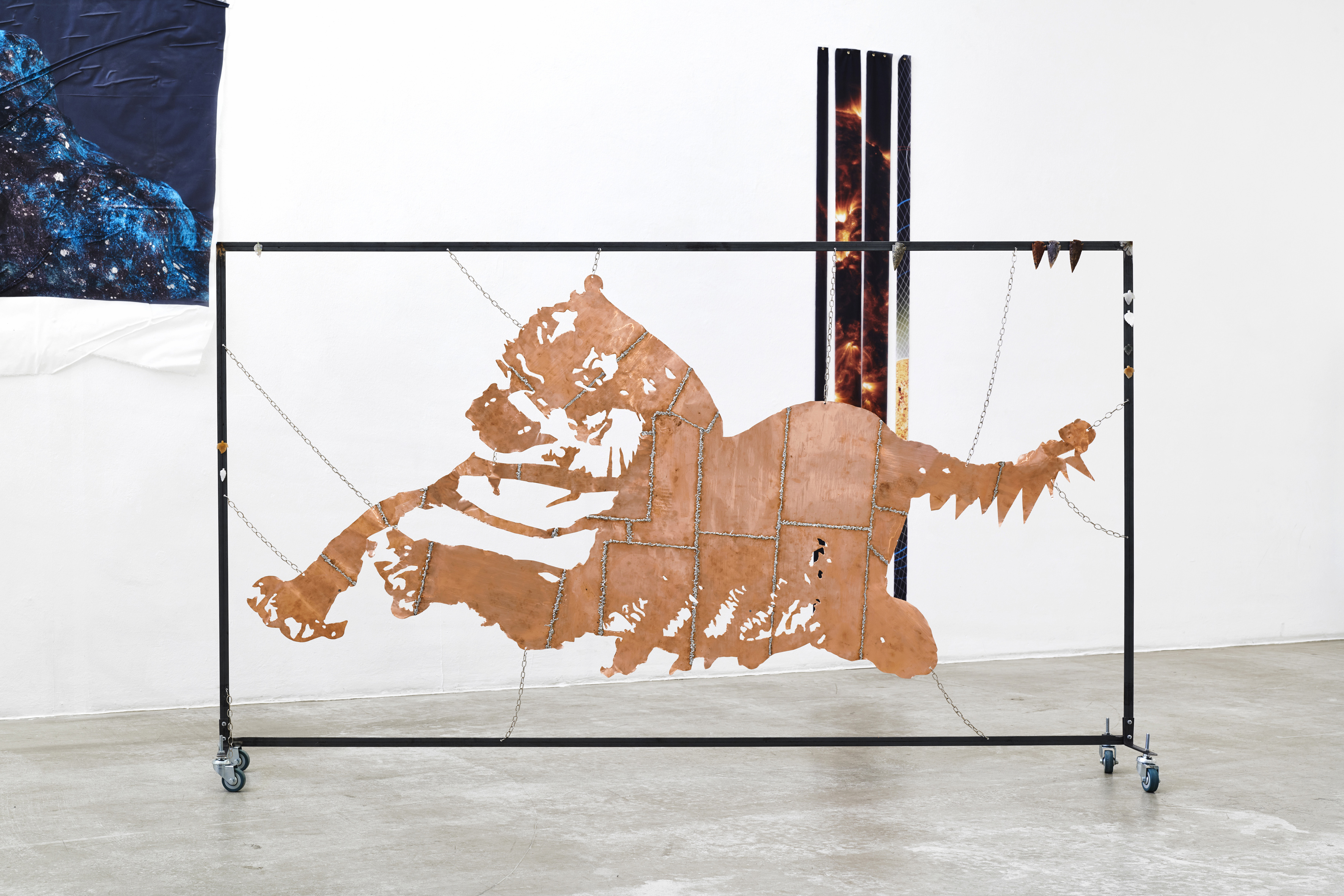 Spirit Animal II, 2019, Copper, solder, steel, stainless steel, jasper, plastic, hematite, 120 x 200 x 40 cm