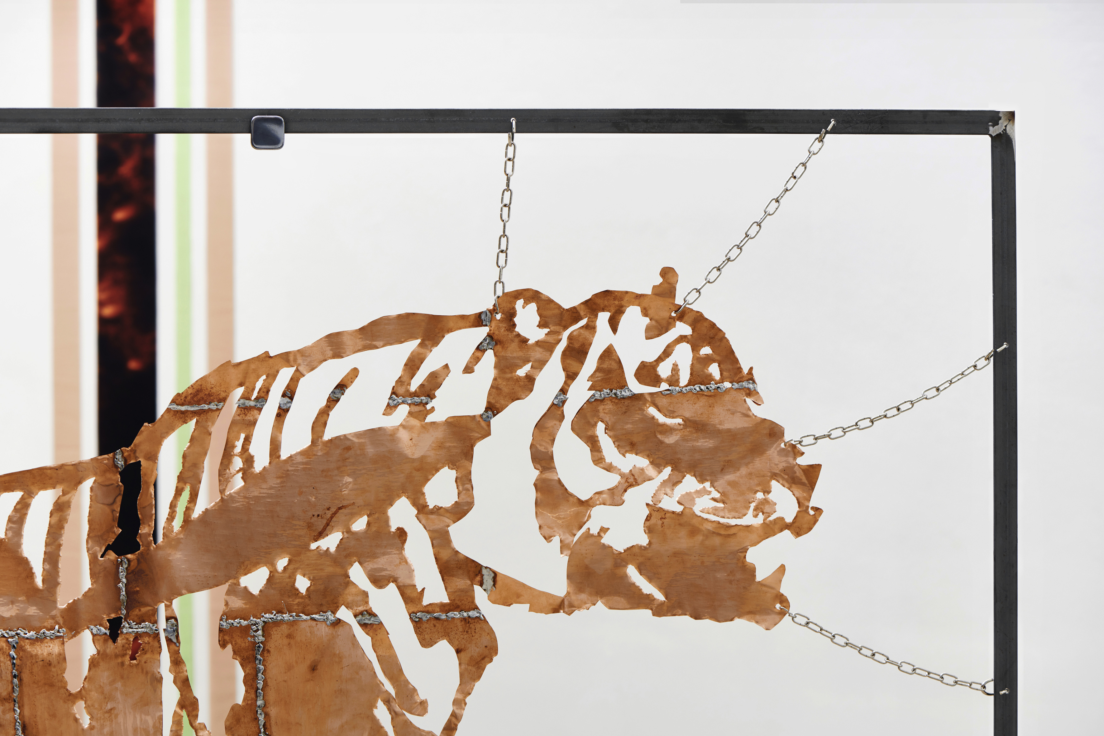 Spirit Animal II, 2019, Copper, solder, steel, stainless steel, jasper, plastic, hematite, 120 x 200 x 40 cm, detail